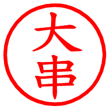[朱肉の色]を選び、入力窓に“大串”と入力して[生成]ボタンを押すと、印影が更新され、リンクから電子印鑑(デジタル印影)がダウンロードできます。 電子印鑑「大串」の作り方文字表示が変なときや、文字バランスが悪いときは[字形切替]のチェックボックスでON/OFFを切り替え[生成]しなおしてください。 生成される画像は通常の印影「大串.png」と、にじみを表現した少し太めの印影「大串B.png」の背面透過PNG形式2種と、鮮明なPDF形式の印影「大串.pdf」の計3種類です。 朱肉の微妙な色の違いを7色で表現しました。デフォルト(左端)は、JISが定めた朱肉の色のマンセル値(7.5R 5/14)をRGB値(217,66,54)に変換したものになっています。 「電子透かし」にチェックを入れて[生成]ボタンを押すと、タイムスタンプを透かしとして埋め込んだセキュアな電子印鑑が作れます。詳細は別ページの「電子透かしとタイムスタンプ」でご覧ください。 大串さんの日付印が作れます。「日付スタンプメーカー」は、社内向けの書類に利用されることの多い日付印(データ印)が無料で作れるWebアプリケーションです。中段に日付が入り、上段と下段は、ともに8文字まで文字が入ります。 ![]() 古代文字で落款印が作れます。「落款スタンプメーカー」で作品を引き立たせる落款印が作れます。
