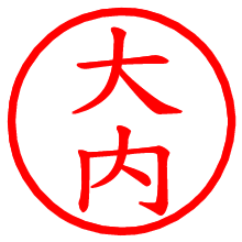 [朱肉の色]を選び、入力窓に“大内”と入力して[生成]ボタンを押すと、印影が更新され、リンクから電子印鑑(デジタル印影)がダウンロードできます。 電子印鑑「大内」の作り方文字表示が変なときや、文字バランスが悪いときは[字形切替]のチェックボックスでON/OFFを切り替え[生成]しなおしてください。 生成される画像は通常の印影「大内.png」と、にじみを表現した少し太めの印影「大内B.png」の背面透過PNG形式2種と、鮮明なPDF形式の印影「大内.pdf」の計3種類です。 朱肉の微妙な色の違いを7色で表現しました。デフォルト(左端)は、JISが定めた朱肉の色のマンセル値(7.5R 5/14)をRGB値(217,66,54)に変換したものになっています。 「電子透かし」にチェックを入れて[生成]ボタンを押すと、タイムスタンプを透かしとして埋め込んだセキュアな電子印鑑が作れます。詳細は別ページの「電子透かしとタイムスタンプ」でご覧ください。 大内さんの日付印が作れます。「日付スタンプメーカー」は、社内向けの書類に利用されることの多い日付印(データ印)が無料で作れるWebアプリケーションです。中段に日付が入り、上段と下段は、ともに8文字まで文字が入ります。 ![]() 古代文字で落款印が作れます。「落款スタンプメーカー」で作品を引き立たせる落款印が作れます。