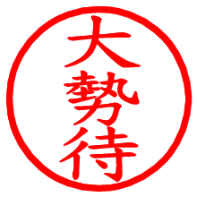 [朱肉の色]を選び、入力窓に“大勢待”と入力して[生成]ボタンを押すと、印影が更新され、リンクから電子印鑑(デジタル印影)がダウンロードできます。 電子印鑑「大勢待」の作り方文字表示が変なときや、文字バランスが悪いときは[字形切替]のチェックボックスでON/OFFを切り替え[生成]しなおしてください。 生成される画像は通常の印影「大勢待.png」と、にじみを表現した少し太めの印影「大勢待B.png」の背面透過PNG形式2種と、鮮明なPDF形式の印影「大勢待.pdf」の計3種類です。 朱肉の微妙な色の違いを7色で表現しました。デフォルト(左端)は、JISが定めた朱肉の色のマンセル値(7.5R 5/14)をRGB値(217,66,54)に変換したものになっています。 「電子透かし」にチェックを入れて[生成]ボタンを押すと、タイムスタンプを電子透かしとして埋め込んだセキュアな電子印鑑が作れます。詳細は別ページの「タイムスタンプと電子透かし」でご覧ください。 大勢待さんの日付印が作れます。「日付スタンプメーカー」は、社内向けの書類に利用されることの多い日付印(データ印)が無料で作れるWebアプリケーションです。中段に日付が入り、上段と下段は、ともに8文字まで文字が入ります。 ![]() 古代文字で落款印が作れます。「落款スタンプメーカー」で作品を引き立たせる落款印が作れます。