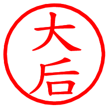 [朱肉の色]を選び、入力窓に“大后”と入力して[生成]ボタンを押すと、印影が更新され、リンクから電子印鑑(デジタル印影)がダウンロードできます。 電子印鑑「大后」の作り方文字表示が変なときや、文字バランスが悪いときは[字形切替]のチェックボックスでON/OFFを切り替え[生成]しなおしてください。 生成される画像は通常の印影「大后.png」と、にじみを表現した少し太めの印影「大后B.png」の背面透過PNG形式2種と、鮮明なPDF形式の印影「大后.pdf」の計3種類です。 朱肉の微妙な色の違いを7色で表現しました。デフォルト(左端)は、JISが定めた朱肉の色のマンセル値(7.5R 5/14)をRGB値(217,66,54)に変換したものになっています。 「電子透かし」にチェックを入れて[生成]ボタンを押すと、タイムスタンプを電子透かしとして埋め込んだセキュアな電子印鑑が作れます。詳細は別ページの「タイムスタンプと電子透かし」でご覧ください。 大后さんの日付印が作れます。「日付スタンプメーカー」は、社内向けの書類に利用されることの多い日付印(データ印)が無料で作れるWebアプリケーションです。中段に日付が入り、上段と下段は、ともに8文字まで文字が入ります。 ![]() 古代文字で落款印が作れます。「落款スタンプメーカー」で作品を引き立たせる落款印が作れます。