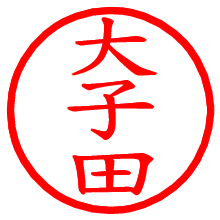 [朱肉の色]を選び、入力窓に“大子田”と入力して[生成]ボタンを押すと、印影が更新され、リンクから電子印鑑(デジタル印影)がダウンロードできます。 電子印鑑「大子田」の作り方文字表示が変なときや、文字バランスが悪いときは[字形切替]のチェックボックスでON/OFFを切り替え[生成]しなおしてください。 生成される画像は通常の印影「大子田.png」と、にじみを表現した少し太めの印影「大子田B.png」の背面透過PNG形式2種と、鮮明なPDF形式の印影「大子田.pdf」の計3種類です。 朱肉の微妙な色の違いを7色で表現しました。デフォルト(左端)は、JISが定めた朱肉の色のマンセル値(7.5R 5/14)をRGB値(217,66,54)に変換したものになっています。 「電子透かし」にチェックを入れて[生成]ボタンを押すと、タイムスタンプを電子透かしとして埋め込んだセキュアな電子印鑑が作れます。詳細は別ページの「タイムスタンプと電子透かし」でご覧ください。 大子田さんの日付印が作れます。「日付スタンプメーカー」は、社内向けの書類に利用されることの多い日付印(データ印)が無料で作れるWebアプリケーションです。中段に日付が入り、上段と下段は、ともに8文字まで文字が入ります。 ![]() 古代文字で落款印が作れます。「落款スタンプメーカー」で作品を引き立たせる落款印が作れます。