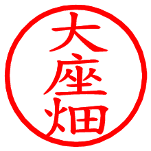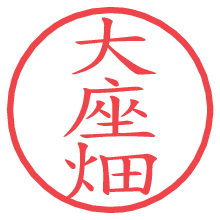 [朱肉の色]を選び、入力窓に“大座畑”と入力して[生成]ボタンを押すと、印影が更新され、リンクから電子印鑑(デジタル印影)がダウンロードできます。 電子印鑑「大座畑」の作り方文字表示が変なときや、文字バランスが悪いときは[字形切替]のチェックボックスでON/OFFを切り替え[生成]しなおしてください。 生成される画像は通常の印影「大座畑.png」と、にじみを表現した少し太めの印影「大座畑B.png」の背面透過PNG形式2種と、鮮明なPDF形式の印影「大座畑.pdf」の計3種類です。 朱肉の微妙な色の違いを7色で表現しました。デフォルト(左端)は、JISが定めた朱肉の色のマンセル値(7.5R 5/14)をRGB値(217,66,54)に変換したものになっています。 「電子透かし」にチェックを入れて[生成]ボタンを押すと、タイムスタンプを電子透かしとして埋め込んだセキュアな電子印鑑が作れます。詳細は別ページの「タイムスタンプと電子透かし」でご覧ください。 大座畑さんの日付印が作れます。「日付スタンプメーカー」は、社内向けの書類に利用されることの多い日付印(データ印)が無料で作れるWebアプリケーションです。中段に日付が入り、上段と下段は、ともに8文字まで文字が入ります。 ![]() 古代文字で落款印が作れます。「落款スタンプメーカー」で作品を引き立たせる落款印が作れます。