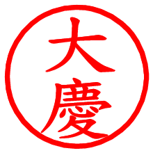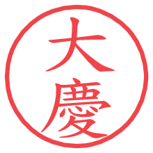 [朱肉の色]を選び、入力窓に“大慶”と入力して[生成]ボタンを押すと、印影が更新され、リンクから電子印鑑(デジタル印影)がダウンロードできます。 電子印鑑「大慶」の作り方文字表示が変なときや、文字バランスが悪いときは[字形切替]のチェックボックスでON/OFFを切り替え[生成]しなおしてください。 生成される画像は通常の印影「大慶.png」と、にじみを表現した少し太めの印影「大慶B.png」の背面透過PNG形式2種と、鮮明なPDF形式の印影「大慶.pdf」の計3種類です。 朱肉の微妙な色の違いを7色で表現しました。デフォルト(左端)は、JISが定めた朱肉の色のマンセル値(7.5R 5/14)をRGB値(217,66,54)に変換したものになっています。 「電子透かし」にチェックを入れて[生成]ボタンを押すと、タイムスタンプを電子透かしとして埋め込んだセキュアな電子印鑑が作れます。詳細は別ページの「タイムスタンプと電子透かし」でご覧ください。 大慶さんの日付印が作れます。「日付スタンプメーカー」は、社内向けの書類に利用されることの多い日付印(データ印)が無料で作れるWebアプリケーションです。中段に日付が入り、上段と下段は、ともに8文字まで文字が入ります。 ![]() 古代文字で落款印が作れます。「落款スタンプメーカー」で作品を引き立たせる落款印が作れます。