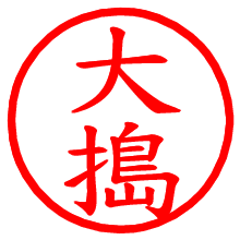 [朱肉の色]を選び、入力窓に“大搗”と入力して[生成]ボタンを押すと、印影が更新され、リンクから電子印鑑(デジタル印影)がダウンロードできます。 電子印鑑「大搗」の作り方文字表示が変なときや、文字バランスが悪いときは[字形切替]のチェックボックスでON/OFFを切り替え[生成]しなおしてください。 生成される画像は通常の印影「大搗.png」と、にじみを表現した少し太めの印影「大搗B.png」の背面透過PNG形式2種と、鮮明なPDF形式の印影「大搗.pdf」の計3種類です。 朱肉の微妙な色の違いを7色で表現しました。デフォルト(左端)は、JISが定めた朱肉の色のマンセル値(7.5R 5/14)をRGB値(217,66,54)に変換したものになっています。 「電子透かし」にチェックを入れて[生成]ボタンを押すと、タイムスタンプを電子透かしとして埋め込んだセキュアな電子印鑑が作れます。詳細は別ページの「タイムスタンプと電子透かし」でご覧ください。 大搗さんの日付印が作れます。「日付スタンプメーカー」は、社内向けの書類に利用されることの多い日付印(データ印)が無料で作れるWebアプリケーションです。中段に日付が入り、上段と下段は、ともに8文字まで文字が入ります。 ![]() 古代文字で落款印が作れます。「落款スタンプメーカー」で作品を引き立たせる落款印が作れます。