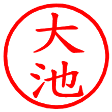 [朱肉の色]を選び、入力窓に“大池”と入力して[生成]ボタンを押すと、印影が更新され、リンクから電子印鑑(デジタル印影)がダウンロードできます。 電子印鑑「大池」の作り方文字表示が変なときや、文字バランスが悪いときは[字形切替]のチェックボックスでON/OFFを切り替え[生成]しなおしてください。 生成される画像は通常の印影「大池.png」と、にじみを表現した少し太めの印影「大池B.png」の背面透過PNG形式2種と、鮮明なPDF形式の印影「大池.pdf」の計3種類です。 朱肉の微妙な色の違いを7色で表現しました。デフォルト(左端)は、JISが定めた朱肉の色のマンセル値(7.5R 5/14)をRGB値(217,66,54)に変換したものになっています。 「電子透かし」にチェックを入れて[生成]ボタンを押すと、タイムスタンプを透かしとして埋め込んだセキュアな電子印鑑が作れます。詳細は別ページの「電子透かしとタイムスタンプ」でご覧ください。 大池さんの日付印が作れます。「日付スタンプメーカー」は、社内向けの書類に利用されることの多い日付印(データ印)が無料で作れるWebアプリケーションです。中段に日付が入り、上段と下段は、ともに8文字まで文字が入ります。 ![]() 古代文字で落款印が作れます。「落款スタンプメーカー」で作品を引き立たせる落款印が作れます。