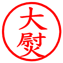 [朱肉の色]を選び、入力窓に“大熨”と入力して[生成]ボタンを押すと、印影が更新され、リンクから電子印鑑(デジタル印影)がダウンロードできます。 電子印鑑「大熨」の作り方文字表示が変なときや、文字バランスが悪いときは[字形切替]のチェックボックスでON/OFFを切り替え[生成]しなおしてください。 生成される画像は通常の印影「大熨.png」と、にじみを表現した少し太めの印影「大熨B.png」の背面透過PNG形式2種と、鮮明なPDF形式の印影「大熨.pdf」の計3種類です。 朱肉の微妙な色の違いを7色で表現しました。デフォルト(左端)は、JISが定めた朱肉の色のマンセル値(7.5R 5/14)をRGB値(217,66,54)に変換したものになっています。 「電子透かし」にチェックを入れて[生成]ボタンを押すと、タイムスタンプを電子透かしとして埋め込んだセキュアな電子印鑑が作れます。詳細は別ページの「タイムスタンプと電子透かし」でご覧ください。 大熨さんの日付印が作れます。「日付スタンプメーカー」は、社内向けの書類に利用されることの多い日付印(データ印)が無料で作れるWebアプリケーションです。中段に日付が入り、上段と下段は、ともに8文字まで文字が入ります。 ![]() 古代文字で落款印が作れます。「落款スタンプメーカー」で作品を引き立たせる落款印が作れます。