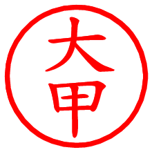[朱肉の色]を選び、入力窓に“大甲”と入力して[生成]ボタンを押すと、印影が更新され、リンクから電子印鑑(デジタル印影)がダウンロードできます。 電子印鑑「大甲」の作り方文字表示が変なときや、文字バランスが悪いときは[字形切替]のチェックボックスでON/OFFを切り替え[生成]しなおしてください。 生成される画像は通常の印影「大甲.png」と、にじみを表現した少し太めの印影「大甲B.png」の背面透過PNG形式2種と、鮮明なPDF形式の印影「大甲.pdf」の計3種類です。 朱肉の微妙な色の違いを7色で表現しました。デフォルト(左端)は、JISが定めた朱肉の色のマンセル値(7.5R 5/14)をRGB値(217,66,54)に変換したものになっています。 「電子透かし」にチェックを入れて[生成]ボタンを押すと、タイムスタンプを電子透かしとして埋め込んだセキュアな電子印鑑が作れます。詳細は別ページの「タイムスタンプと電子透かし」でご覧ください。 大甲さんの日付印が作れます。「日付スタンプメーカー」は、社内向けの書類に利用されることの多い日付印(データ印)が無料で作れるWebアプリケーションです。中段に日付が入り、上段と下段は、ともに8文字まで文字が入ります。 ![]() 古代文字で落款印が作れます。「落款スタンプメーカー」で作品を引き立たせる落款印が作れます。