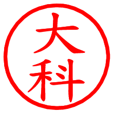 [朱肉の色]を選び、入力窓に“大科”と入力して[生成]ボタンを押すと、印影が更新され、リンクから電子印鑑(デジタル印影)がダウンロードできます。 電子印鑑「大科」の作り方文字表示が変なときや、文字バランスが悪いときは[字形切替]のチェックボックスでON/OFFを切り替え[生成]しなおしてください。 生成される画像は通常の印影「大科.png」と、にじみを表現した少し太めの印影「大科B.png」の背面透過PNG形式2種と、鮮明なPDF形式の印影「大科.pdf」の計3種類です。 朱肉の微妙な色の違いを7色で表現しました。デフォルト(左端)は、JISが定めた朱肉の色のマンセル値(7.5R 5/14)をRGB値(217,66,54)に変換したものになっています。 「電子透かし」にチェックを入れて[生成]ボタンを押すと、タイムスタンプを透かしとして埋め込んだセキュアな電子印鑑が作れます。詳細は別ページの「電子透かしとタイムスタンプ」でご覧ください。 大科さんの日付印が作れます。「日付スタンプメーカー」は、社内向けの書類に利用されることの多い日付印(データ印)が無料で作れるWebアプリケーションです。中段に日付が入り、上段と下段は、ともに8文字まで文字が入ります。 ![]() 古代文字で落款印が作れます。「落款スタンプメーカー」で作品を引き立たせる落款印が作れます。