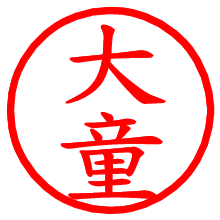 [朱肉の色]を選び、入力窓に“大童”と入力して[生成]ボタンを押すと、印影が更新され、リンクから電子印鑑(デジタル印影)がダウンロードできます。 電子印鑑「大童」の作り方文字表示が変なときや、文字バランスが悪いときは[字形切替]のチェックボックスでON/OFFを切り替え[生成]しなおしてください。 生成される画像は通常の印影「大童.png」と、にじみを表現した少し太めの印影「大童B.png」の背面透過PNG形式2種と、鮮明なPDF形式の印影「大童.pdf」の計3種類です。 朱肉の微妙な色の違いを7色で表現しました。デフォルト(左端)は、JISが定めた朱肉の色のマンセル値(7.5R 5/14)をRGB値(217,66,54)に変換したものになっています。 「電子透かし」にチェックを入れて[生成]ボタンを押すと、タイムスタンプを電子透かしとして埋め込んだセキュアな電子印鑑が作れます。詳細は別ページの「タイムスタンプと電子透かし」でご覧ください。 大童さんの日付印が作れます。「日付スタンプメーカー」は、社内向けの書類に利用されることの多い日付印(データ印)が無料で作れるWebアプリケーションです。中段に日付が入り、上段と下段は、ともに8文字まで文字が入ります。 ![]() 古代文字で落款印が作れます。「落款スタンプメーカー」で作品を引き立たせる落款印が作れます。