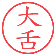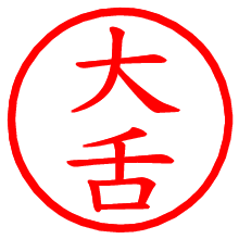 [朱肉の色]を選び、入力窓に“大舌”と入力して[生成]ボタンを押すと、印影が更新され、リンクから電子印鑑(デジタル印影)がダウンロードできます。 電子印鑑「大舌」の作り方文字表示が変なときや、文字バランスが悪いときは[字形切替]のチェックボックスでON/OFFを切り替え[生成]しなおしてください。 生成される画像は通常の印影「大舌.png」と、にじみを表現した少し太めの印影「大舌B.png」の背面透過PNG形式2種と、鮮明なPDF形式の印影「大舌.pdf」の計3種類です。 朱肉の微妙な色の違いを7色で表現しました。デフォルト(左端)は、JISが定めた朱肉の色のマンセル値(7.5R 5/14)をRGB値(217,66,54)に変換したものになっています。 「電子透かし」にチェックを入れて[生成]ボタンを押すと、タイムスタンプを電子透かしとして埋め込んだセキュアな電子印鑑が作れます。詳細は別ページの「タイムスタンプと電子透かし」でご覧ください。 大舌さんの日付印が作れます。「日付スタンプメーカー」は、社内向けの書類に利用されることの多い日付印(データ印)が無料で作れるWebアプリケーションです。中段に日付が入り、上段と下段は、ともに8文字まで文字が入ります。 ![]() 古代文字で落款印が作れます。「落款スタンプメーカー」で作品を引き立たせる落款印が作れます。