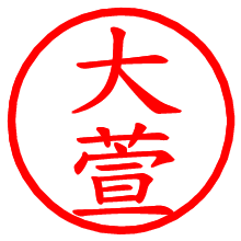 [朱肉の色]を選び、入力窓に“大萱”と入力して[生成]ボタンを押すと、印影が更新され、リンクから電子印鑑(デジタル印影)がダウンロードできます。 電子印鑑「大萱」の作り方文字表示が変なときや、文字バランスが悪いときは[字形切替]のチェックボックスでON/OFFを切り替え[生成]しなおしてください。 生成される画像は通常の印影「大萱.png」と、にじみを表現した少し太めの印影「大萱B.png」の背面透過PNG形式2種と、鮮明なPDF形式の印影「大萱.pdf」の計3種類です。 朱肉の微妙な色の違いを7色で表現しました。デフォルト(左端)は、JISが定めた朱肉の色のマンセル値(7.5R 5/14)をRGB値(217,66,54)に変換したものになっています。 「電子透かし」にチェックを入れて[生成]ボタンを押すと、タイムスタンプを透かしとして埋め込んだセキュアな電子印鑑が作れます。詳細は別ページの「電子透かしとタイムスタンプ」でご覧ください。 大萱さんの日付印が作れます。「日付スタンプメーカー」は、社内向けの書類に利用されることの多い日付印(データ印)が無料で作れるWebアプリケーションです。中段に日付が入り、上段と下段は、ともに8文字まで文字が入ります。 ![]() 古代文字で落款印が作れます。「落款スタンプメーカー」で作品を引き立たせる落款印が作れます。