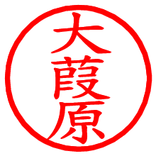 [朱肉の色]を選び、入力窓に“大葭原”と入力して[生成]ボタンを押すと、印影が更新され、リンクから電子印鑑(デジタル印影)がダウンロードできます。 電子印鑑「大葭原」の作り方文字表示が変なときや、文字バランスが悪いときは[字形切替]のチェックボックスでON/OFFを切り替え[生成]しなおしてください。 生成される画像は通常の印影「大葭原.png」と、にじみを表現した少し太めの印影「大葭原B.png」の背面透過PNG形式2種と、鮮明なPDF形式の印影「大葭原.pdf」の計3種類です。 朱肉の微妙な色の違いを7色で表現しました。デフォルト(左端)は、JISが定めた朱肉の色のマンセル値(7.5R 5/14)をRGB値(217,66,54)に変換したものになっています。 「電子透かし」にチェックを入れて[生成]ボタンを押すと、タイムスタンプを電子透かしとして埋め込んだセキュアな電子印鑑が作れます。詳細は別ページの「タイムスタンプと電子透かし」でご覧ください。 大葭原さんの日付印が作れます。「日付スタンプメーカー」は、社内向けの書類に利用されることの多い日付印(データ印)が無料で作れるWebアプリケーションです。中段に日付が入り、上段と下段は、ともに8文字まで文字が入ります。 ![]() 古代文字で落款印が作れます。「落款スタンプメーカー」で作品を引き立たせる落款印が作れます。