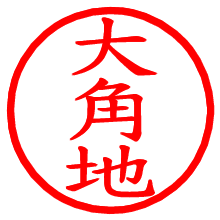 [朱肉の色]を選び、入力窓に“大角地”と入力して[生成]ボタンを押すと、印影が更新され、リンクから電子印鑑(デジタル印影)がダウンロードできます。 電子印鑑「大角地」の作り方文字表示が変なときや、文字バランスが悪いときは[字形切替]のチェックボックスでON/OFFを切り替え[生成]しなおしてください。 生成される画像は通常の印影「大角地.png」と、にじみを表現した少し太めの印影「大角地B.png」の背面透過PNG形式2種と、鮮明なPDF形式の印影「大角地.pdf」の計3種類です。 朱肉の微妙な色の違いを7色で表現しました。デフォルト(左端)は、JISが定めた朱肉の色のマンセル値(7.5R 5/14)をRGB値(217,66,54)に変換したものになっています。 「電子透かし」にチェックを入れて[生成]ボタンを押すと、タイムスタンプを透かしとして埋め込んだセキュアな電子印鑑が作れます。詳細は別ページの「電子透かしとタイムスタンプ」でご覧ください。  大角地さんの日付印が作れます。「日付スタンプメーカー」は、社内向けの書類に利用されることの多い日付印(データ印)が無料で作れるWebアプリケーションです。中段に日付が入り、上段と下段は、ともに8文字まで文字が入ります。 ![]()  古代文字で落款印が作れます。「落款スタンプメーカー」で作品を引き立たせる落款印が作れます。