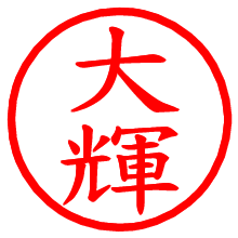 [朱肉の色]を選び、入力窓に“大輝”と入力して[生成]ボタンを押すと、印影が更新され、リンクから電子印鑑(デジタル印影)がダウンロードできます。 電子印鑑「大輝」の作り方文字表示が変なときや、文字バランスが悪いときは[字形切替]のチェックボックスでON/OFFを切り替え[生成]しなおしてください。 生成される画像は通常の印影「大輝.png」と、にじみを表現した少し太めの印影「大輝B.png」の背面透過PNG形式2種と、鮮明なPDF形式の印影「大輝.pdf」の計3種類です。 朱肉の微妙な色の違いを7色で表現しました。デフォルト(左端)は、JISが定めた朱肉の色のマンセル値(7.5R 5/14)をRGB値(217,66,54)に変換したものになっています。 「電子透かし」にチェックを入れて[生成]ボタンを押すと、タイムスタンプを電子透かしとして埋め込んだセキュアな電子印鑑が作れます。詳細は別ページの「タイムスタンプと電子透かし」でご覧ください。 大輝さんの日付印が作れます。「日付スタンプメーカー」は、社内向けの書類に利用されることの多い日付印(データ印)が無料で作れるWebアプリケーションです。中段に日付が入り、上段と下段は、ともに8文字まで文字が入ります。 ![]() 古代文字で落款印が作れます。「落款スタンプメーカー」で作品を引き立たせる落款印が作れます。