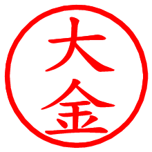 [朱肉の色]を選び、入力窓に“大金”と入力して[生成]ボタンを押すと、印影が更新され、リンクから電子印鑑(デジタル印影)がダウンロードできます。 電子印鑑「大金」の作り方文字表示が変なときや、文字バランスが悪いときは[字形切替]のチェックボックスでON/OFFを切り替え[生成]しなおしてください。 生成される画像は通常の印影「大金.png」と、にじみを表現した少し太めの印影「大金B.png」の背面透過PNG形式2種と、鮮明なPDF形式の印影「大金.pdf」の計3種類です。 朱肉の微妙な色の違いを7色で表現しました。デフォルト(左端)は、JISが定めた朱肉の色のマンセル値(7.5R 5/14)をRGB値(217,66,54)に変換したものになっています。 「電子透かし」にチェックを入れて[生成]ボタンを押すと、タイムスタンプを透かしとして埋め込んだセキュアな電子印鑑が作れます。詳細は別ページの「電子透かしとタイムスタンプ」でご覧ください。 大金さんの日付印が作れます。「日付スタンプメーカー」は、社内向けの書類に利用されることの多い日付印(データ印)が無料で作れるWebアプリケーションです。中段に日付が入り、上段と下段は、ともに8文字まで文字が入ります。 ![]() 古代文字で落款印が作れます。「落款スタンプメーカー」で作品を引き立たせる落款印が作れます。