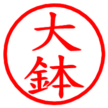 [朱肉の色]を選び、入力窓に“大鉢”と入力して[生成]ボタンを押すと、印影が更新され、リンクから電子印鑑(デジタル印影)がダウンロードできます。 電子印鑑「大鉢」の作り方文字表示が変なときや、文字バランスが悪いときは[字形切替]のチェックボックスでON/OFFを切り替え[生成]しなおしてください。 生成される画像は通常の印影「大鉢.png」と、にじみを表現した少し太めの印影「大鉢B.png」の背面透過PNG形式2種と、鮮明なPDF形式の印影「大鉢.pdf」の計3種類です。 朱肉の微妙な色の違いを7色で表現しました。デフォルト(左端)は、JISが定めた朱肉の色のマンセル値(7.5R 5/14)をRGB値(217,66,54)に変換したものになっています。 「電子透かし」にチェックを入れて[生成]ボタンを押すと、タイムスタンプを電子透かしとして埋め込んだセキュアな電子印鑑が作れます。詳細は別ページの「タイムスタンプと電子透かし」でご覧ください。 大鉢さんの日付印が作れます。「日付スタンプメーカー」は、社内向けの書類に利用されることの多い日付印(データ印)が無料で作れるWebアプリケーションです。中段に日付が入り、上段と下段は、ともに8文字まで文字が入ります。 ![]() 古代文字で落款印が作れます。「落款スタンプメーカー」で作品を引き立たせる落款印が作れます。