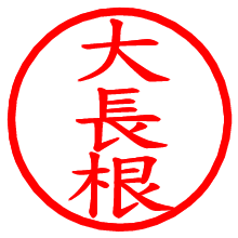 [朱肉の色]を選び、入力窓に“大長根”と入力して[生成]ボタンを押すと、印影が更新され、リンクから電子印鑑(デジタル印影)がダウンロードできます。 電子印鑑「大長根」の作り方文字表示が変なときや、文字バランスが悪いときは[字形切替]のチェックボックスでON/OFFを切り替え[生成]しなおしてください。 生成される画像は通常の印影「大長根.png」と、にじみを表現した少し太めの印影「大長根B.png」の背面透過PNG形式2種と、鮮明なPDF形式の印影「大長根.pdf」の計3種類です。 朱肉の微妙な色の違いを7色で表現しました。デフォルト(左端)は、JISが定めた朱肉の色のマンセル値(7.5R 5/14)をRGB値(217,66,54)に変換したものになっています。 「電子透かし」にチェックを入れて[生成]ボタンを押すと、タイムスタンプを電子透かしとして埋め込んだセキュアな電子印鑑が作れます。詳細は別ページの「タイムスタンプと電子透かし」でご覧ください。 大長根さんの日付印が作れます。「日付スタンプメーカー」は、社内向けの書類に利用されることの多い日付印(データ印)が無料で作れるWebアプリケーションです。中段に日付が入り、上段と下段は、ともに8文字まで文字が入ります。 ![]() 古代文字で落款印が作れます。「落款スタンプメーカー」で作品を引き立たせる落款印が作れます。