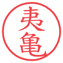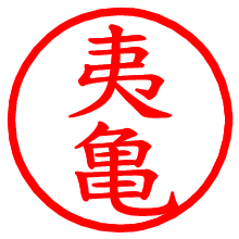 [朱肉の色]を選び、入力窓に“夷亀”と入力して[生成]ボタンを押すと、印影が更新され、リンクから電子印鑑(デジタル印影)がダウンロードできます。 電子印鑑「夷亀」の作り方文字表示が変なときや、文字バランスが悪いときは[字形切替]のチェックボックスでON/OFFを切り替え[生成]しなおしてください。 生成される画像は通常の印影「夷亀.png」と、にじみを表現した少し太めの印影「夷亀B.png」の背面透過PNG形式2種と、鮮明なPDF形式の印影「夷亀.pdf」の計3種類です。 朱肉の微妙な色の違いを7色で表現しました。デフォルト(左端)は、JISが定めた朱肉の色のマンセル値(7.5R 5/14)をRGB値(217,66,54)に変換したものになっています。 「電子透かし」にチェックを入れて[生成]ボタンを押すと、タイムスタンプを電子透かしとして埋め込んだセキュアな電子印鑑が作れます。詳細は別ページの「タイムスタンプと電子透かし」でご覧ください。 夷亀さんの日付印が作れます。「日付スタンプメーカー」は、社内向けの書類に利用されることの多い日付印(データ印)が無料で作れるWebアプリケーションです。中段に日付が入り、上段と下段は、ともに8文字まで文字が入ります。 ![]() 古代文字で落款印が作れます。「落款スタンプメーカー」で作品を引き立たせる落款印が作れます。