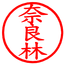 [朱肉の色]を選び、入力窓に“奈良林”と入力して[生成]ボタンを押すと、印影が更新され、リンクから電子印鑑(デジタル印影)がダウンロードできます。 電子印鑑「奈良林」の作り方文字表示が変なときや、文字バランスが悪いときは[字形切替]のチェックボックスでON/OFFを切り替え[生成]しなおしてください。 生成される画像は通常の印影「奈良林.png」と、にじみを表現した少し太めの印影「奈良林B.png」の背面透過PNG形式2種と、鮮明なPDF形式の印影「奈良林.pdf」の計3種類です。 朱肉の微妙な色の違いを7色で表現しました。デフォルト(左端)は、JISが定めた朱肉の色のマンセル値(7.5R 5/14)をRGB値(217,66,54)に変換したものになっています。 「電子透かし」にチェックを入れて[生成]ボタンを押すと、タイムスタンプを電子透かしとして埋め込んだセキュアな電子印鑑が作れます。詳細は別ページの「タイムスタンプと電子透かし」でご覧ください。 奈良林さんの日付印が作れます。「日付スタンプメーカー」は、社内向けの書類に利用されることの多い日付印(データ印)が無料で作れるWebアプリケーションです。中段に日付が入り、上段と下段は、ともに8文字まで文字が入ります。 ![]() 古代文字で落款印が作れます。「落款スタンプメーカー」で作品を引き立たせる落款印が作れます。