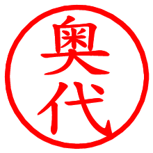 [朱肉の色]を選び、入力窓に“奥代”と入力して[生成]ボタンを押すと、印影が更新され、リンクから電子印鑑(デジタル印影)がダウンロードできます。 電子印鑑「奥代」の作り方文字表示が変なときや、文字バランスが悪いときは[字形切替]のチェックボックスでON/OFFを切り替え[生成]しなおしてください。 生成される画像は通常の印影「奥代.png」と、にじみを表現した少し太めの印影「奥代B.png」の背面透過PNG形式2種と、鮮明なPDF形式の印影「奥代.pdf」の計3種類です。 朱肉の微妙な色の違いを7色で表現しました。デフォルト(左端)は、JISが定めた朱肉の色のマンセル値(7.5R 5/14)をRGB値(217,66,54)に変換したものになっています。 「電子透かし」にチェックを入れて[生成]ボタンを押すと、タイムスタンプを透かしとして埋め込んだセキュアな電子印鑑が作れます。詳細は別ページの「電子透かしとタイムスタンプ」でご覧ください。 奥代さんの日付印が作れます。「日付スタンプメーカー」は、社内向けの書類に利用されることの多い日付印(データ印)が無料で作れるWebアプリケーションです。中段に日付が入り、上段と下段は、ともに8文字まで文字が入ります。 ![]() 古代文字で落款印が作れます。「落款スタンプメーカー」で作品を引き立たせる落款印が作れます。