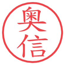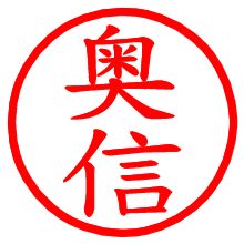 [朱肉の色]を選び、入力窓に“奥信”と入力して[生成]ボタンを押すと、印影が更新され、リンクから電子印鑑(デジタル印影)がダウンロードできます。 電子印鑑「奥信」の作り方文字表示が変なときや、文字バランスが悪いときは[字形切替]のチェックボックスでON/OFFを切り替え[生成]しなおしてください。 生成される画像は通常の印影「奥信.png」と、にじみを表現した少し太めの印影「奥信B.png」の背面透過PNG形式2種と、鮮明なPDF形式の印影「奥信.pdf」の計3種類です。 朱肉の微妙な色の違いを7色で表現しました。デフォルト(左端)は、JISが定めた朱肉の色のマンセル値(7.5R 5/14)をRGB値(217,66,54)に変換したものになっています。 「電子透かし」にチェックを入れて[生成]ボタンを押すと、タイムスタンプを電子透かしとして埋め込んだセキュアな電子印鑑が作れます。詳細は別ページの「タイムスタンプと電子透かし」でご覧ください。 奥信さんの日付印が作れます。「日付スタンプメーカー」は、社内向けの書類に利用されることの多い日付印(データ印)が無料で作れるWebアプリケーションです。中段に日付が入り、上段と下段は、ともに8文字まで文字が入ります。 ![]() 古代文字で落款印が作れます。「落款スタンプメーカー」で作品を引き立たせる落款印が作れます。
