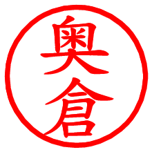 [朱肉の色]を選び、入力窓に“奥倉”と入力して[生成]ボタンを押すと、印影が更新され、リンクから電子印鑑(デジタル印影)がダウンロードできます。 電子印鑑「奥倉」の作り方文字表示が変なときや、文字バランスが悪いときは[字形切替]のチェックボックスでON/OFFを切り替え[生成]しなおしてください。 生成される画像は通常の印影「奥倉.png」と、にじみを表現した少し太めの印影「奥倉B.png」の背面透過PNG形式2種と、鮮明なPDF形式の印影「奥倉.pdf」の計3種類です。 朱肉の微妙な色の違いを7色で表現しました。デフォルト(左端)は、JISが定めた朱肉の色のマンセル値(7.5R 5/14)をRGB値(217,66,54)に変換したものになっています。 「電子透かし」にチェックを入れて[生成]ボタンを押すと、タイムスタンプを透かしとして埋め込んだセキュアな電子印鑑が作れます。詳細は別ページの「電子透かしとタイムスタンプ」でご覧ください。 奥倉さんの日付印が作れます。「日付スタンプメーカー」は、社内向けの書類に利用されることの多い日付印(データ印)が無料で作れるWebアプリケーションです。中段に日付が入り、上段と下段は、ともに8文字まで文字が入ります。 ![]() 古代文字で落款印が作れます。「落款スタンプメーカー」で作品を引き立たせる落款印が作れます。