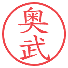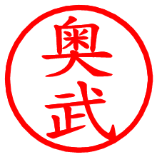 [朱肉の色]を選び、入力窓に“奥武”と入力して[生成]ボタンを押すと、印影が更新され、リンクから電子印鑑(デジタル印影)がダウンロードできます。 電子印鑑「奥武」の作り方文字表示が変なときや、文字バランスが悪いときは[字形切替]のチェックボックスでON/OFFを切り替え[生成]しなおしてください。 生成される画像は通常の印影「奥武.png」と、にじみを表現した少し太めの印影「奥武B.png」の背面透過PNG形式2種と、鮮明なPDF形式の印影「奥武.pdf」の計3種類です。 朱肉の微妙な色の違いを7色で表現しました。デフォルト(左端)は、JISが定めた朱肉の色のマンセル値(7.5R 5/14)をRGB値(217,66,54)に変換したものになっています。 「電子透かし」にチェックを入れて[生成]ボタンを押すと、タイムスタンプを電子透かしとして埋め込んだセキュアな電子印鑑が作れます。詳細は別ページの「タイムスタンプと電子透かし」でご覧ください。 奥武さんの日付印が作れます。「日付スタンプメーカー」は、社内向けの書類に利用されることの多い日付印(データ印)が無料で作れるWebアプリケーションです。中段に日付が入り、上段と下段は、ともに8文字まで文字が入ります。 ![]() 古代文字で落款印が作れます。「落款スタンプメーカー」で作品を引き立たせる落款印が作れます。