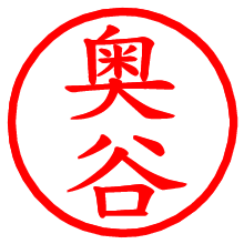 [朱肉の色]を選び、入力窓に“奥谷”と入力して[生成]ボタンを押すと、印影が更新され、リンクから電子印鑑(デジタル印影)がダウンロードできます。 電子印鑑「奥谷」の作り方文字表示が変なときや、文字バランスが悪いときは[字形切替]のチェックボックスでON/OFFを切り替え[生成]しなおしてください。 生成される画像は通常の印影「奥谷.png」と、にじみを表現した少し太めの印影「奥谷B.png」の背面透過PNG形式2種と、鮮明なPDF形式の印影「奥谷.pdf」の計3種類です。 朱肉の微妙な色の違いを7色で表現しました。デフォルト(左端)は、JISが定めた朱肉の色のマンセル値(7.5R 5/14)をRGB値(217,66,54)に変換したものになっています。 「電子透かし」にチェックを入れて[生成]ボタンを押すと、タイムスタンプを透かしとして埋め込んだセキュアな電子印鑑が作れます。詳細は別ページの「電子透かしとタイムスタンプ」でご覧ください。 奥谷さんの日付印が作れます。「日付スタンプメーカー」は、社内向けの書類に利用されることの多い日付印(データ印)が無料で作れるWebアプリケーションです。中段に日付が入り、上段と下段は、ともに8文字まで文字が入ります。 ![]() 古代文字で落款印が作れます。「落款スタンプメーカー」で作品を引き立たせる落款印が作れます。