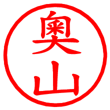 [朱肉の色]を選び、入力窓に“奧山”と入力して[生成]ボタンを押すと、印影が更新され、リンクから電子印鑑(デジタル印影)がダウンロードできます。 電子印鑑「奧山」の作り方文字表示が変なときや、文字バランスが悪いときは[字形切替]のチェックボックスでON/OFFを切り替え[生成]しなおしてください。 生成される画像は通常の印影「奧山.png」と、にじみを表現した少し太めの印影「奧山B.png」の背面透過PNG形式2種と、鮮明なPDF形式の印影「奧山.pdf」の計3種類です。 朱肉の微妙な色の違いを7色で表現しました。デフォルト(左端)は、JISが定めた朱肉の色のマンセル値(7.5R 5/14)をRGB値(217,66,54)に変換したものになっています。 「電子透かし」にチェックを入れて[生成]ボタンを押すと、タイムスタンプを透かしとして埋め込んだセキュアな電子印鑑が作れます。詳細は別ページの「電子透かしとタイムスタンプ」でご覧ください。 奧山さんの日付印が作れます。「日付スタンプメーカー」は、社内向けの書類に利用されることの多い日付印(データ印)が無料で作れるWebアプリケーションです。中段に日付が入り、上段と下段は、ともに8文字まで文字が入ります。 ![]() 古代文字で落款印が作れます。「落款スタンプメーカー」で作品を引き立たせる落款印が作れます。