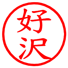 [朱肉の色]を選び、入力窓に“好沢”と入力して[生成]ボタンを押すと、印影が更新され、リンクから電子印鑑(デジタル印影)がダウンロードできます。 電子印鑑「好沢」の作り方文字表示が変なときや、文字バランスが悪いときは[字形切替]のチェックボックスでON/OFFを切り替え[生成]しなおしてください。 生成される画像は通常の印影「好沢.png」と、にじみを表現した少し太めの印影「好沢B.png」の背面透過PNG形式2種と、鮮明なPDF形式の印影「好沢.pdf」の計3種類です。 朱肉の微妙な色の違いを7色で表現しました。デフォルト(左端)は、JISが定めた朱肉の色のマンセル値(7.5R 5/14)をRGB値(217,66,54)に変換したものになっています。 「電子透かし」にチェックを入れて[生成]ボタンを押すと、タイムスタンプを電子透かしとして埋め込んだセキュアな電子印鑑が作れます。詳細は別ページの「タイムスタンプと電子透かし」でご覧ください。 好沢さんの日付印が作れます。「日付スタンプメーカー」は、社内向けの書類に利用されることの多い日付印(データ印)が無料で作れるWebアプリケーションです。中段に日付が入り、上段と下段は、ともに8文字まで文字が入ります。 ![]() 古代文字で落款印が作れます。「落款スタンプメーカー」で作品を引き立たせる落款印が作れます。