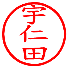 [朱肉の色]を選び、入力窓に“宇仁田”と入力して[生成]ボタンを押すと、印影が更新され、リンクから電子印鑑(デジタル印影)がダウンロードできます。 電子印鑑「宇仁田」の作り方文字表示が変なときや、文字バランスが悪いときは[字形切替]のチェックボックスでON/OFFを切り替え[生成]しなおしてください。 生成される画像は通常の印影「宇仁田.png」と、にじみを表現した少し太めの印影「宇仁田B.png」の背面透過PNG形式2種と、鮮明なPDF形式の印影「宇仁田.pdf」の計3種類です。 朱肉の微妙な色の違いを7色で表現しました。デフォルト(左端)は、JISが定めた朱肉の色のマンセル値(7.5R 5/14)をRGB値(217,66,54)に変換したものになっています。 「電子透かし」にチェックを入れて[生成]ボタンを押すと、タイムスタンプを電子透かしとして埋め込んだセキュアな電子印鑑が作れます。詳細は別ページの「タイムスタンプと電子透かし」でご覧ください。 宇仁田さんの日付印が作れます。「日付スタンプメーカー」は、社内向けの書類に利用されることの多い日付印(データ印)が無料で作れるWebアプリケーションです。中段に日付が入り、上段と下段は、ともに8文字まで文字が入ります。 ![]() 古代文字で落款印が作れます。「落款スタンプメーカー」で作品を引き立たせる落款印が作れます。