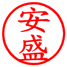 [朱肉の色]を選び、入力窓に“安盛”と入力して[生成]ボタンを押すと、印影が更新され、リンクから電子印鑑(デジタル印影)がダウンロードできます。 電子印鑑「安盛」の作り方文字表示が変なときや、文字バランスが悪いときは[字形切替]のチェックボックスでON/OFFを切り替え[生成]しなおしてください。 生成される画像は通常の印影「安盛.png」と、にじみを表現した少し太めの印影「安盛B.png」の背面透過PNG形式2種と、鮮明なPDF形式の印影「安盛.pdf」の計3種類です。 朱肉の微妙な色の違いを7色で表現しました。デフォルト(左端)は、JISが定めた朱肉の色のマンセル値(7.5R 5/14)をRGB値(217,66,54)に変換したものになっています。 「電子透かし」にチェックを入れて[生成]ボタンを押すと、タイムスタンプを透かしとして埋め込んだセキュアな電子印鑑が作れます。詳細は別ページの「電子透かしとタイムスタンプ」でご覧ください。 安盛さんの日付印が作れます。「日付スタンプメーカー」は、社内向けの書類に利用されることの多い日付印(データ印)が無料で作れるWebアプリケーションです。中段に日付が入り、上段と下段は、ともに8文字まで文字が入ります。 ![]() 古代文字で落款印が作れます。「落款スタンプメーカー」で作品を引き立たせる落款印が作れます。