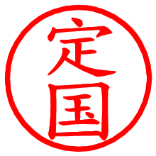 [朱肉の色]を選び、入力窓に“定国”と入力して[生成]ボタンを押すと、印影が更新され、リンクから電子印鑑(デジタル印影)がダウンロードできます。 電子印鑑「定国」の作り方文字表示が変なときや、文字バランスが悪いときは[字形切替]のチェックボックスでON/OFFを切り替え[生成]しなおしてください。 生成される画像は通常の印影「定国.png」と、にじみを表現した少し太めの印影「定国B.png」の背面透過PNG形式2種と、鮮明なPDF形式の印影「定国.pdf」の計3種類です。 朱肉の微妙な色の違いを7色で表現しました。デフォルト(左端)は、JISが定めた朱肉の色のマンセル値(7.5R 5/14)をRGB値(217,66,54)に変換したものになっています。 「電子透かし」にチェックを入れて[生成]ボタンを押すと、タイムスタンプを電子透かしとして埋め込んだセキュアな電子印鑑が作れます。詳細は別ページの「タイムスタンプと電子透かし」でご覧ください。 定国さんの日付印が作れます。「日付スタンプメーカー」は、社内向けの書類に利用されることの多い日付印(データ印)が無料で作れるWebアプリケーションです。中段に日付が入り、上段と下段は、ともに8文字まで文字が入ります。 ![]() 古代文字で落款印が作れます。「落款スタンプメーカー」で作品を引き立たせる落款印が作れます。