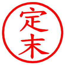 [朱肉の色]を選び、入力窓に“定末”と入力して[生成]ボタンを押すと、印影が更新され、リンクから電子印鑑(デジタル印影)がダウンロードできます。 電子印鑑「定末」の作り方文字表示が変なときや、文字バランスが悪いときは[字形切替]のチェックボックスでON/OFFを切り替え[生成]しなおしてください。 生成される画像は通常の印影「定末.png」と、にじみを表現した少し太めの印影「定末B.png」の背面透過PNG形式2種と、鮮明なPDF形式の印影「定末.pdf」の計3種類です。 朱肉の微妙な色の違いを7色で表現しました。デフォルト(左端)は、JISが定めた朱肉の色のマンセル値(7.5R 5/14)をRGB値(217,66,54)に変換したものになっています。 「電子透かし」にチェックを入れて[生成]ボタンを押すと、タイムスタンプを電子透かしとして埋め込んだセキュアな電子印鑑が作れます。詳細は別ページの「タイムスタンプと電子透かし」でご覧ください。 定末さんの日付印が作れます。「日付スタンプメーカー」は、社内向けの書類に利用されることの多い日付印(データ印)が無料で作れるWebアプリケーションです。中段に日付が入り、上段と下段は、ともに8文字まで文字が入ります。 ![]() 古代文字で落款印が作れます。「落款スタンプメーカー」で作品を引き立たせる落款印が作れます。