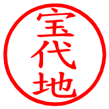 [朱肉の色]を選び、入力窓に“宝代地”と入力して[生成]ボタンを押すと、印影が更新され、リンクから電子印鑑(デジタル印影)がダウンロードできます。 電子印鑑「宝代地」の作り方文字表示が変なときや、文字バランスが悪いときは[字形切替]のチェックボックスでON/OFFを切り替え[生成]しなおしてください。 生成される画像は通常の印影「宝代地.png」と、にじみを表現した少し太めの印影「宝代地B.png」の背面透過PNG形式2種と、鮮明なPDF形式の印影「宝代地.pdf」の計3種類です。 朱肉の微妙な色の違いを7色で表現しました。デフォルト(左端)は、JISが定めた朱肉の色のマンセル値(7.5R 5/14)をRGB値(217,66,54)に変換したものになっています。 「電子透かし」にチェックを入れて[生成]ボタンを押すと、タイムスタンプを電子透かしとして埋め込んだセキュアな電子印鑑が作れます。詳細は別ページの「タイムスタンプと電子透かし」でご覧ください。 宝代地さんの日付印が作れます。「日付スタンプメーカー」は、社内向けの書類に利用されることの多い日付印(データ印)が無料で作れるWebアプリケーションです。中段に日付が入り、上段と下段は、ともに8文字まで文字が入ります。 ![]() 古代文字で落款印が作れます。「落款スタンプメーカー」で作品を引き立たせる落款印が作れます。