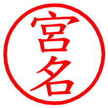 [朱肉の色]を選び、入力窓に“宮名”と入力して[生成]ボタンを押すと、印影が更新され、リンクから電子印鑑(デジタル印影)がダウンロードできます。 電子印鑑「宮名」の作り方文字表示が変なときや、文字バランスが悪いときは[字形切替]のチェックボックスでON/OFFを切り替え[生成]しなおしてください。 生成される画像は通常の印影「宮名.png」と、にじみを表現した少し太めの印影「宮名B.png」の背面透過PNG形式2種と、鮮明なPDF形式の印影「宮名.pdf」の計3種類です。 朱肉の微妙な色の違いを7色で表現しました。デフォルト(左端)は、JISが定めた朱肉の色のマンセル値(7.5R 5/14)をRGB値(217,66,54)に変換したものになっています。 「電子透かし」にチェックを入れて[生成]ボタンを押すと、タイムスタンプを電子透かしとして埋め込んだセキュアな電子印鑑が作れます。詳細は別ページの「タイムスタンプと電子透かし」でご覧ください。 宮名さんの日付印が作れます。「日付スタンプメーカー」は、社内向けの書類に利用されることの多い日付印(データ印)が無料で作れるWebアプリケーションです。中段に日付が入り、上段と下段は、ともに8文字まで文字が入ります。 ![]() 古代文字で落款印が作れます。「落款スタンプメーカー」で作品を引き立たせる落款印が作れます。
