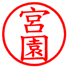 [朱肉の色]を選び、入力窓に“宮園”と入力して[生成]ボタンを押すと、印影が更新され、リンクから電子印鑑(デジタル印影)がダウンロードできます。 電子印鑑「宮園」の作り方文字表示が変なときや、文字バランスが悪いときは[字形切替]のチェックボックスでON/OFFを切り替え[生成]しなおしてください。 生成される画像は通常の印影「宮園.png」と、にじみを表現した少し太めの印影「宮園B.png」の背面透過PNG形式2種と、鮮明なPDF形式の印影「宮園.pdf」の計3種類です。 朱肉の微妙な色の違いを7色で表現しました。デフォルト(左端)は、JISが定めた朱肉の色のマンセル値(7.5R 5/14)をRGB値(217,66,54)に変換したものになっています。 「電子透かし」にチェックを入れて[生成]ボタンを押すと、タイムスタンプを透かしとして埋め込んだセキュアな電子印鑑が作れます。詳細は別ページの「電子透かしとタイムスタンプ」でご覧ください。 宮園さんの日付印が作れます。「日付スタンプメーカー」は、社内向けの書類に利用されることの多い日付印(データ印)が無料で作れるWebアプリケーションです。中段に日付が入り、上段と下段は、ともに8文字まで文字が入ります。 ![]() 古代文字で落款印が作れます。「落款スタンプメーカー」で作品を引き立たせる落款印が作れます。