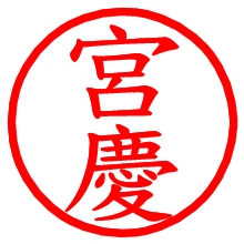 [朱肉の色]を選び、入力窓に“宮慶”と入力して[生成]ボタンを押すと、印影が更新され、リンクから電子印鑑(デジタル印影)がダウンロードできます。 電子印鑑「宮慶」の作り方文字表示が変なときや、文字バランスが悪いときは[字形切替]のチェックボックスでON/OFFを切り替え[生成]しなおしてください。 生成される画像は通常の印影「宮慶.png」と、にじみを表現した少し太めの印影「宮慶B.png」の背面透過PNG形式2種と、鮮明なPDF形式の印影「宮慶.pdf」の計3種類です。 朱肉の微妙な色の違いを7色で表現しました。デフォルト(左端)は、JISが定めた朱肉の色のマンセル値(7.5R 5/14)をRGB値(217,66,54)に変換したものになっています。 「電子透かし」にチェックを入れて[生成]ボタンを押すと、タイムスタンプを電子透かしとして埋め込んだセキュアな電子印鑑が作れます。詳細は別ページの「タイムスタンプと電子透かし」でご覧ください。 宮慶さんの日付印が作れます。「日付スタンプメーカー」は、社内向けの書類に利用されることの多い日付印(データ印)が無料で作れるWebアプリケーションです。中段に日付が入り、上段と下段は、ともに8文字まで文字が入ります。 ![]() 古代文字で落款印が作れます。「落款スタンプメーカー」で作品を引き立たせる落款印が作れます。