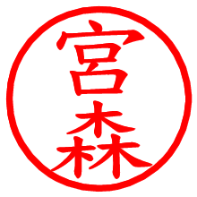 [朱肉の色]を選び、入力窓に“宮森”と入力して[生成]ボタンを押すと、印影が更新され、リンクから電子印鑑(デジタル印影)がダウンロードできます。 電子印鑑「宮森」の作り方文字表示が変なときや、文字バランスが悪いときは[字形切替]のチェックボックスでON/OFFを切り替え[生成]しなおしてください。 生成される画像は通常の印影「宮森.png」と、にじみを表現した少し太めの印影「宮森B.png」の背面透過PNG形式2種と、鮮明なPDF形式の印影「宮森.pdf」の計3種類です。 朱肉の微妙な色の違いを7色で表現しました。デフォルト(左端)は、JISが定めた朱肉の色のマンセル値(7.5R 5/14)をRGB値(217,66,54)に変換したものになっています。 「電子透かし」にチェックを入れて[生成]ボタンを押すと、タイムスタンプを透かしとして埋め込んだセキュアな電子印鑑が作れます。詳細は別ページの「電子透かしとタイムスタンプ」でご覧ください。 宮森さんの日付印が作れます。「日付スタンプメーカー」は、社内向けの書類に利用されることの多い日付印(データ印)が無料で作れるWebアプリケーションです。中段に日付が入り、上段と下段は、ともに8文字まで文字が入ります。 ![]() 古代文字で落款印が作れます。「落款スタンプメーカー」で作品を引き立たせる落款印が作れます。