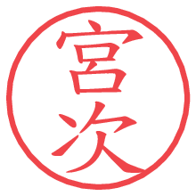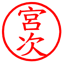 [朱肉の色]を選び、入力窓に“宮次”と入力して[生成]ボタンを押すと、印影が更新され、リンクから電子印鑑(デジタル印影)がダウンロードできます。 電子印鑑「宮次」の作り方文字表示が変なときや、文字バランスが悪いときは[字形切替]のチェックボックスでON/OFFを切り替え[生成]しなおしてください。 生成される画像は通常の印影「宮次.png」と、にじみを表現した少し太めの印影「宮次B.png」の背面透過PNG形式2種と、鮮明なPDF形式の印影「宮次.pdf」の計3種類です。 朱肉の微妙な色の違いを7色で表現しました。デフォルト(左端)は、JISが定めた朱肉の色のマンセル値(7.5R 5/14)をRGB値(217,66,54)に変換したものになっています。 「電子透かし」にチェックを入れて[生成]ボタンを押すと、タイムスタンプを電子透かしとして埋め込んだセキュアな電子印鑑が作れます。詳細は別ページの「タイムスタンプと電子透かし」でご覧ください。 宮次さんの日付印が作れます。「日付スタンプメーカー」は、社内向けの書類に利用されることの多い日付印(データ印)が無料で作れるWebアプリケーションです。中段に日付が入り、上段と下段は、ともに8文字まで文字が入ります。 ![]() 古代文字で落款印が作れます。「落款スタンプメーカー」で作品を引き立たせる落款印が作れます。
