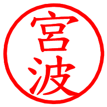 [朱肉の色]を選び、入力窓に“宮波”と入力して[生成]ボタンを押すと、印影が更新され、リンクから電子印鑑(デジタル印影)がダウンロードできます。 電子印鑑「宮波」の作り方文字表示が変なときや、文字バランスが悪いときは[字形切替]のチェックボックスでON/OFFを切り替え[生成]しなおしてください。 生成される画像は通常の印影「宮波.png」と、にじみを表現した少し太めの印影「宮波B.png」の背面透過PNG形式2種と、鮮明なPDF形式の印影「宮波.pdf」の計3種類です。 朱肉の微妙な色の違いを7色で表現しました。デフォルト(左端)は、JISが定めた朱肉の色のマンセル値(7.5R 5/14)をRGB値(217,66,54)に変換したものになっています。 「電子透かし」にチェックを入れて[生成]ボタンを押すと、タイムスタンプを電子透かしとして埋め込んだセキュアな電子印鑑が作れます。詳細は別ページの「タイムスタンプと電子透かし」でご覧ください。 宮波さんの日付印が作れます。「日付スタンプメーカー」は、社内向けの書類に利用されることの多い日付印(データ印)が無料で作れるWebアプリケーションです。中段に日付が入り、上段と下段は、ともに8文字まで文字が入ります。 ![]() 古代文字で落款印が作れます。「落款スタンプメーカー」で作品を引き立たせる落款印が作れます。