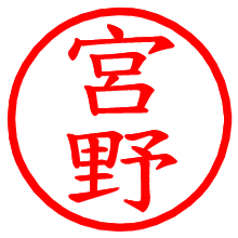 [朱肉の色]を選び、入力窓に“宮野”と入力して[生成]ボタンを押すと、印影が更新され、リンクから電子印鑑(デジタル印影)がダウンロードできます。 電子印鑑「宮野」の作り方文字表示が変なときや、文字バランスが悪いときは[字形切替]のチェックボックスでON/OFFを切り替え[生成]しなおしてください。 生成される画像は通常の印影「宮野.png」と、にじみを表現した少し太めの印影「宮野B.png」の背面透過PNG形式2種と、鮮明なPDF形式の印影「宮野.pdf」の計3種類です。 朱肉の微妙な色の違いを7色で表現しました。デフォルト(左端)は、JISが定めた朱肉の色のマンセル値(7.5R 5/14)をRGB値(217,66,54)に変換したものになっています。 「電子透かし」にチェックを入れて[生成]ボタンを押すと、タイムスタンプを透かしとして埋め込んだセキュアな電子印鑑が作れます。詳細は別ページの「電子透かしとタイムスタンプ」でご覧ください。  宮野さんの日付印が作れます。「日付スタンプメーカー」は、社内向けの書類に利用されることの多い日付印(データ印)が無料で作れるWebアプリケーションです。 中段に日付が入り、上段と下段は、ともに8文字まで文字が入ります。   古代文字で落款印が作れます。「落款スタンプメーカー」で作品を引き立たせる落款印が作れます。  なりきり書道 「落款スタンプメーカー」で作成した落款印の全体的な配置バランスの確認にご利用いただけます。デザインのワンポイントやラインスタンプ等にもお使いください。  遊び心ある宮野さんの角印はいかが? 絵文字が使えてLINEスタンプや年賀状にも使える消しゴムはんこ風の電子印鑑が作れます。  画像スタンプメーカーは、猫派の方はもちろん。犬派の方にもおすすめしたいペットなどのお気に入りの画像とかわいいタッチの文字が入るほっこりしたスタンプです。 マイスタンプメーカーとは法的な電子印鑑にはあたりませんので三文判的な位置付けでご利用ください。 | ||