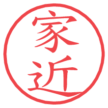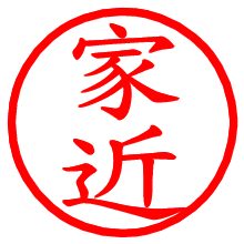 [朱肉の色]を選び、入力窓に“家近”と入力して[生成]ボタンを押すと、印影が更新され、リンクから電子印鑑(デジタル印影)がダウンロードできます。 電子印鑑「家近」の作り方文字表示が変なときや、文字バランスが悪いときは[字形切替]のチェックボックスでON/OFFを切り替え[生成]しなおしてください。 生成される画像は通常の印影「家近.png」と、にじみを表現した少し太めの印影「家近B.png」の背面透過PNG形式2種と、鮮明なPDF形式の印影「家近.pdf」の計3種類です。 朱肉の微妙な色の違いを7色で表現しました。デフォルト(左端)は、JISが定めた朱肉の色のマンセル値(7.5R 5/14)をRGB値(217,66,54)に変換したものになっています。 「電子透かし」にチェックを入れて[生成]ボタンを押すと、タイムスタンプを透かしとして埋め込んだセキュアな電子印鑑が作れます。詳細は別ページの「電子透かしとタイムスタンプ」でご覧ください。  家近さんの日付印が作れます。「日付スタンプメーカー」は、社内向けの書類に利用されることの多い日付印(データ印)が無料で作れるWebアプリケーションです。中段に日付が入り、上段と下段は、ともに8文字まで文字が入ります。 ![]()  古代文字で落款印が作れます。「落款スタンプメーカー」で作品を引き立たせる落款印が作れます。