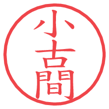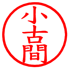 [朱肉の色]を選び、入力窓に“小古間”と入力して[生成]ボタンを押すと、印影が更新され、リンクから電子印鑑(デジタル印影)がダウンロードできます。 電子印鑑「小古間」の作り方文字表示が変なときや、文字バランスが悪いときは[字形切替]のチェックボックスでON/OFFを切り替え[生成]しなおしてください。 生成される画像は通常の印影「小古間.png」と、にじみを表現した少し太めの印影「小古間B.png」の背面透過PNG形式2種と、鮮明なPDF形式の印影「小古間.pdf」の計3種類です。 朱肉の微妙な色の違いを7色で表現しました。デフォルト(左端)は、JISが定めた朱肉の色のマンセル値(7.5R 5/14)をRGB値(217,66,54)に変換したものになっています。 「電子透かし」にチェックを入れて[生成]ボタンを押すと、タイムスタンプを電子透かしとして埋め込んだセキュアな電子印鑑が作れます。詳細は別ページの「タイムスタンプと電子透かし」でご覧ください。 小古間さんの日付印が作れます。「日付スタンプメーカー」は、社内向けの書類に利用されることの多い日付印(データ印)が無料で作れるWebアプリケーションです。中段に日付が入り、上段と下段は、ともに8文字まで文字が入ります。 ![]() 古代文字で落款印が作れます。「落款スタンプメーカー」で作品を引き立たせる落款印が作れます。