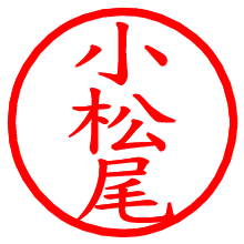 [朱肉の色]を選び、入力窓に“小松尾”と入力して[生成]ボタンを押すと、印影が更新され、リンクから電子印鑑(デジタル印影)がダウンロードできます。 電子印鑑「小松尾」の作り方文字表示が変なときや、文字バランスが悪いときは[字形切替]のチェックボックスでON/OFFを切り替え[生成]しなおしてください。 生成される画像は通常の印影「小松尾.png」と、にじみを表現した少し太めの印影「小松尾B.png」の背面透過PNG形式2種と、鮮明なPDF形式の印影「小松尾.pdf」の計3種類です。 朱肉の微妙な色の違いを7色で表現しました。デフォルト(左端)は、JISが定めた朱肉の色のマンセル値(7.5R 5/14)をRGB値(217,66,54)に変換したものになっています。 「電子透かし」にチェックを入れて[生成]ボタンを押すと、タイムスタンプを透かしとして埋め込んだセキュアな電子印鑑が作れます。詳細は別ページの「電子透かしとタイムスタンプ」でご覧ください。  小松尾さんの日付印が作れます。「日付スタンプメーカー」は、社内向けの書類に利用されることの多い日付印(データ印)が無料で作れるWebアプリケーションです。中段に日付が入り、上段と下段は、ともに8文字まで文字が入ります。 ![]()  古代文字で落款印が作れます。「落款スタンプメーカー」で作品を引き立たせる落款印が作れます。