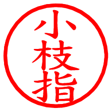 [朱肉の色]を選び、入力窓に“小枝指”と入力して[生成]ボタンを押すと、印影が更新され、リンクから電子印鑑(デジタル印影)がダウンロードできます。 電子印鑑「小枝指」の作り方文字表示が変なときや、文字バランスが悪いときは[字形切替]のチェックボックスでON/OFFを切り替え[生成]しなおしてください。 生成される画像は通常の印影「小枝指.png」と、にじみを表現した少し太めの印影「小枝指B.png」の背面透過PNG形式2種と、鮮明なPDF形式の印影「小枝指.pdf」の計3種類です。 朱肉の微妙な色の違いを7色で表現しました。デフォルト(左端)は、JISが定めた朱肉の色のマンセル値(7.5R 5/14)をRGB値(217,66,54)に変換したものになっています。 「電子透かし」にチェックを入れて[生成]ボタンを押すと、タイムスタンプを透かしとして埋め込んだセキュアな電子印鑑が作れます。詳細は別ページの「電子透かしとタイムスタンプ」でご覧ください。  小枝指さんの日付印が作れます。「日付スタンプメーカー」は、社内向けの書類に利用されることの多い日付印(データ印)が無料で作れるWebアプリケーションです。中段に日付が入り、上段と下段は、ともに8文字まで文字が入ります。 ![]()  古代文字で落款印が作れます。「落款スタンプメーカー」で作品を引き立たせる落款印が作れます。