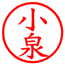 [朱肉の色]を選び、入力窓に“小泉”と入力して[生成]ボタンを押すと、印影が更新され、リンクから電子印鑑(デジタル印影)がダウンロードできます。 電子印鑑「小泉」の作り方文字表示が変なときや、文字バランスが悪いときは[字形切替]のチェックボックスでON/OFFを切り替え[生成]しなおしてください。 生成される画像は通常の印影「小泉.png」と、にじみを表現した少し太めの印影「小泉B.png」の背面透過PNG形式2種と、鮮明なPDF形式の印影「小泉.pdf」の計3種類です。 朱肉の微妙な色の違いを7色で表現しました。デフォルト(左端)は、JISが定めた朱肉の色のマンセル値(7.5R 5/14)をRGB値(217,66,54)に変換したものになっています。 「電子透かし」にチェックを入れて[生成]ボタンを押すと、タイムスタンプを透かしとして埋め込んだセキュアな電子印鑑が作れます。詳細は別ページの「電子透かしとタイムスタンプ」でご覧ください。 小泉さんの日付印が作れます。「日付スタンプメーカー」は、社内向けの書類に利用されることの多い日付印(データ印)が無料で作れるWebアプリケーションです。中段に日付が入り、上段と下段は、ともに8文字まで文字が入ります。 ![]() 古代文字で落款印が作れます。「落款スタンプメーカー」で作品を引き立たせる落款印が作れます。