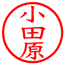 [朱肉の色]を選び、入力窓に“小田原”と入力して[生成]ボタンを押すと、印影が更新され、リンクから電子印鑑(デジタル印影)がダウンロードできます。 電子印鑑「小田原」の作り方文字表示が変なときや、文字バランスが悪いときは[字形切替]のチェックボックスでON/OFFを切り替え[生成]しなおしてください。 生成される画像は通常の印影「小田原.png」と、にじみを表現した少し太めの印影「小田原B.png」の背面透過PNG形式2種と、鮮明なPDF形式の印影「小田原.pdf」の計3種類です。 朱肉の微妙な色の違いを7色で表現しました。デフォルト(左端)は、JISが定めた朱肉の色のマンセル値(7.5R 5/14)をRGB値(217,66,54)に変換したものになっています。 「電子透かし」にチェックを入れて[生成]ボタンを押すと、タイムスタンプを透かしとして埋め込んだセキュアな電子印鑑が作れます。詳細は別ページの「電子透かしとタイムスタンプ」でご覧ください。 小田原さんの日付印が作れます。「日付スタンプメーカー」は、社内向けの書類に利用されることの多い日付印(データ印)が無料で作れるWebアプリケーションです。中段に日付が入り、上段と下段は、ともに8文字まで文字が入ります。 ![]() 古代文字で落款印が作れます。「落款スタンプメーカー」で作品を引き立たせる落款印が作れます。