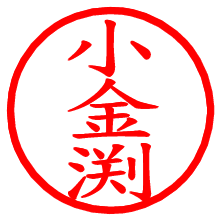[朱肉の色]を選び、入力窓に“小金渕”と入力して[生成]ボタンを押すと、印影が更新され、リンクから電子印鑑(デジタル印影)がダウンロードできます。 電子印鑑「小金渕」の作り方文字表示が変なときや、文字バランスが悪いときは[字形切替]のチェックボックスでON/OFFを切り替え[生成]しなおしてください。 生成される画像は通常の印影「小金渕.png」と、にじみを表現した少し太めの印影「小金渕B.png」の背面透過PNG形式2種と、鮮明なPDF形式の印影「小金渕.pdf」の計3種類です。 朱肉の微妙な色の違いを7色で表現しました。デフォルト(左端)は、JISが定めた朱肉の色のマンセル値(7.5R 5/14)をRGB値(217,66,54)に変換したものになっています。 「電子透かし」にチェックを入れて[生成]ボタンを押すと、タイムスタンプを電子透かしとして埋め込んだセキュアな電子印鑑が作れます。詳細は別ページの「タイムスタンプと電子透かし」でご覧ください。 小金渕さんの日付印が作れます。「日付スタンプメーカー」は、社内向けの書類に利用されることの多い日付印(データ印)が無料で作れるWebアプリケーションです。中段に日付が入り、上段と下段は、ともに8文字まで文字が入ります。 ![]() 古代文字で落款印が作れます。「落款スタンプメーカー」で作品を引き立たせる落款印が作れます。