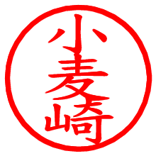 [朱肉の色]を選び、入力窓に“小麦崎”と入力して[生成]ボタンを押すと、印影が更新され、リンクから電子印鑑(デジタル印影)がダウンロードできます。 電子印鑑「小麦崎」の作り方文字表示が変なときや、文字バランスが悪いときは[字形切替]のチェックボックスでON/OFFを切り替え[生成]しなおしてください。 生成される画像は通常の印影「小麦崎.png」と、にじみを表現した少し太めの印影「小麦崎B.png」の背面透過PNG形式2種と、鮮明なPDF形式の印影「小麦崎.pdf」の計3種類です。 朱肉の微妙な色の違いを7色で表現しました。デフォルト(左端)は、JISが定めた朱肉の色のマンセル値(7.5R 5/14)をRGB値(217,66,54)に変換したものになっています。 「電子透かし」にチェックを入れて[生成]ボタンを押すと、タイムスタンプを電子透かしとして埋め込んだセキュアな電子印鑑が作れます。詳細は別ページの「タイムスタンプと電子透かし」でご覧ください。 小麦崎さんの日付印が作れます。「日付スタンプメーカー」は、社内向けの書類に利用されることの多い日付印(データ印)が無料で作れるWebアプリケーションです。中段に日付が入り、上段と下段は、ともに8文字まで文字が入ります。 ![]() 古代文字で落款印が作れます。「落款スタンプメーカー」で作品を引き立たせる落款印が作れます。